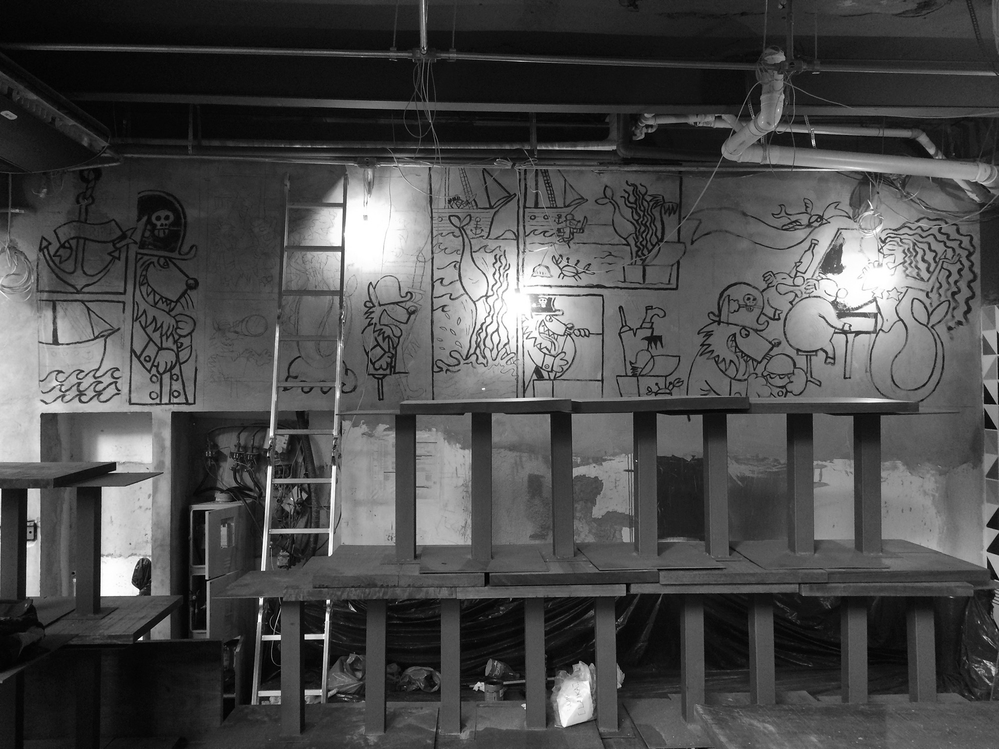 Laika created the name and the brand Riba. Thereafter Laika passed by and scribbled one of the 7-meter walls with sequential graffiti.
