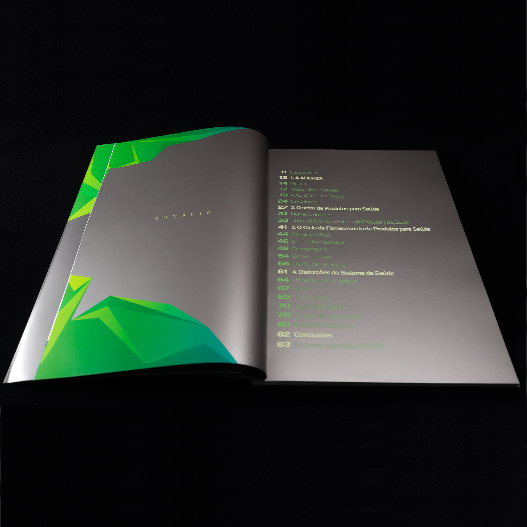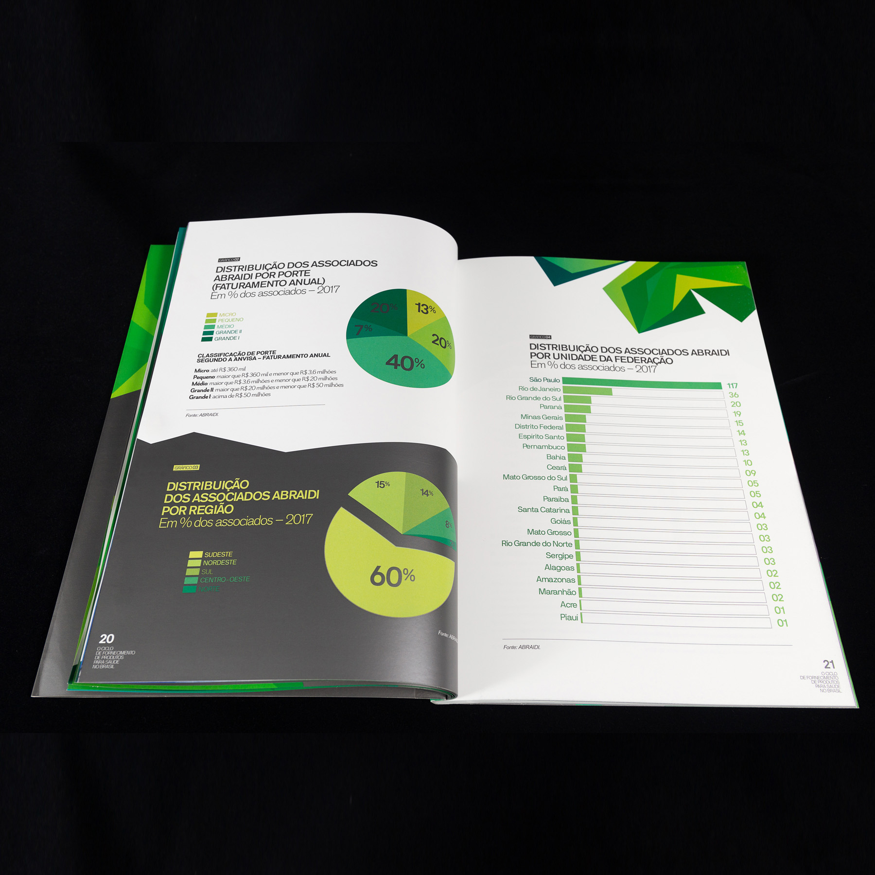 Abraidi, Associação Brasileira de Importadores e Distribuidores de Produtos para Saúde, encomendou da Websetorial um extenso estudo sobre atividade econômica da área de saúde, apresentando perspectivas e propostas para o setor, resumido em um white paper. A Laika desenvolveu o projeto gráfico – linguagem, edição de imagens, infografias e ilustrações – e coordenou a produção. O resultado é uma publicação de conteúdo bem servido de todos os componentes gráficos para detalhar o profundo e amplo estudo.