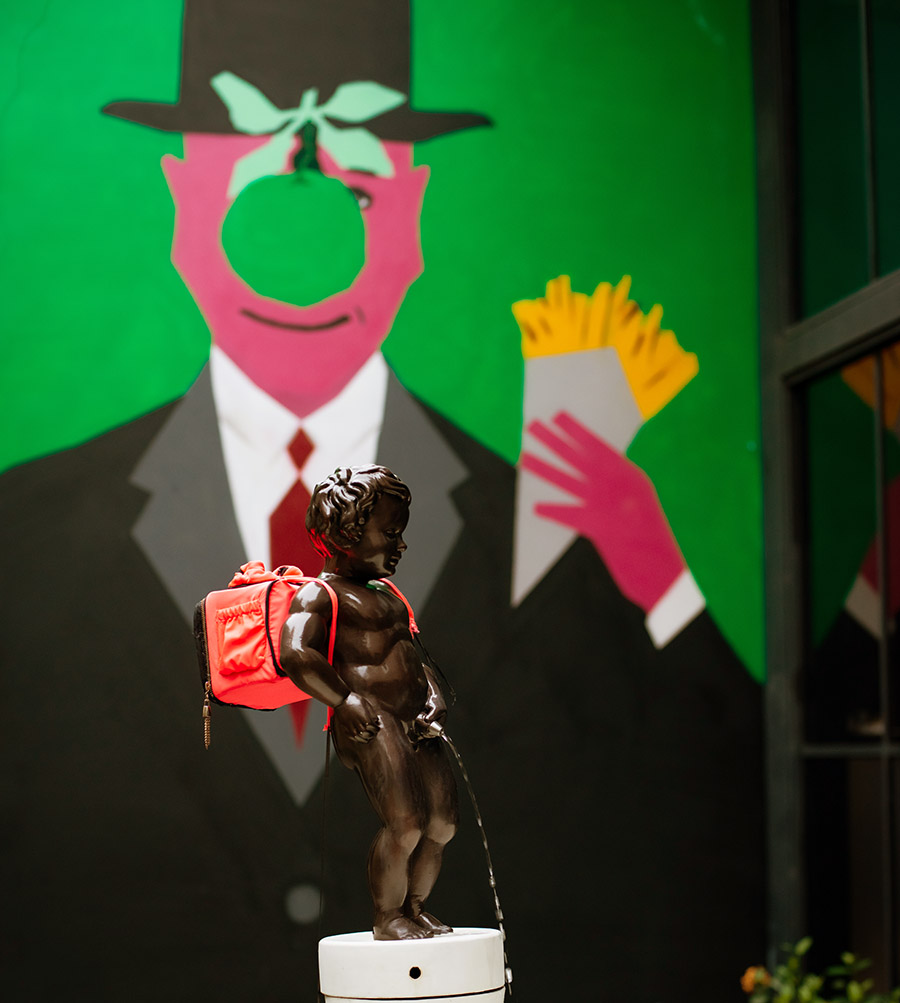 A iconografia belga é extensa, das artes plásticas ao tênis. É impossível pensar a Bélgica sem a chuva, Manneken Pis e René Magritte. Assim, para o projeto de identidade, a Laika se apropriou dessa vasta iconografia e compôs diálogos textuais e gráficos com ela.
