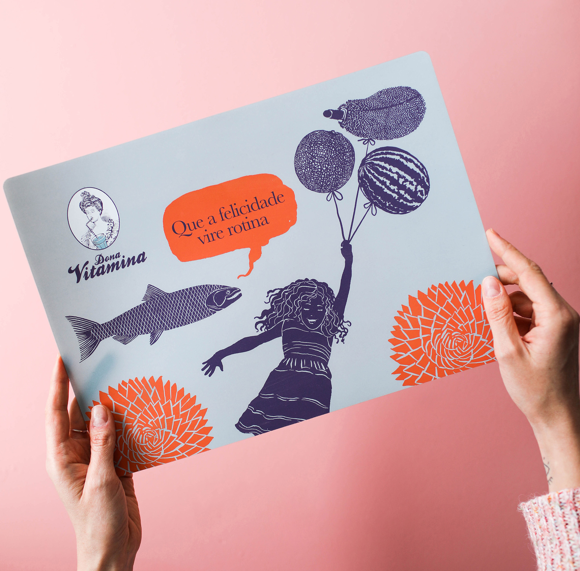 A marca Dona Vitamina, criada em 2010, completava 10 anos. O momento pedia por mudança de linguagem visual, preservando sua essência original de humor e que reforçasse a gênese do empoderamento feminino presente na marca.